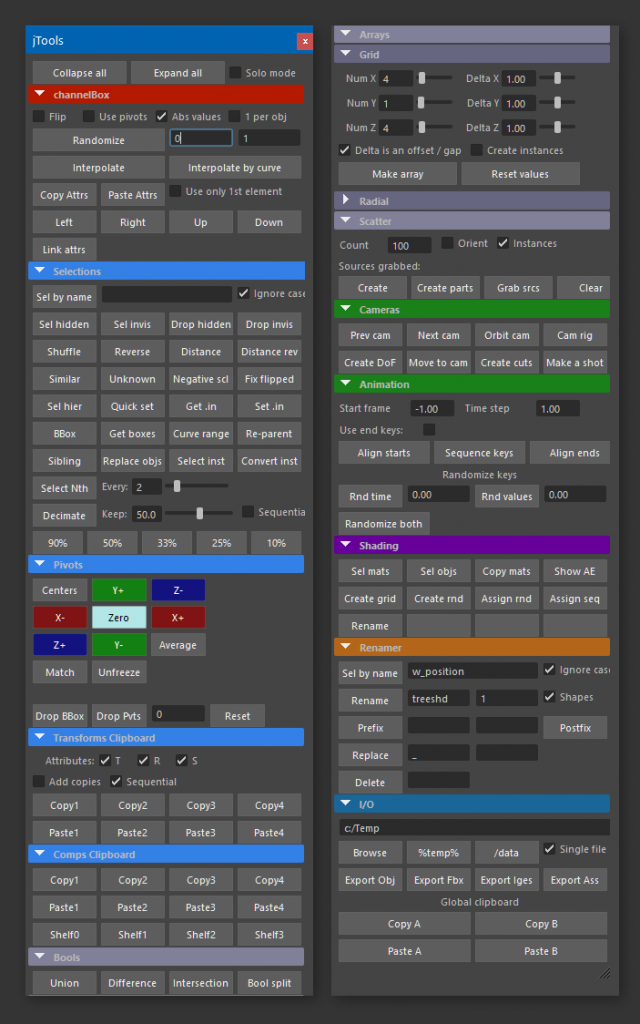 The paradigm here is simple and a little bit of a Unix-kind: with minimal tools - maximum results. In general these tools can save hours for any Maya artist.